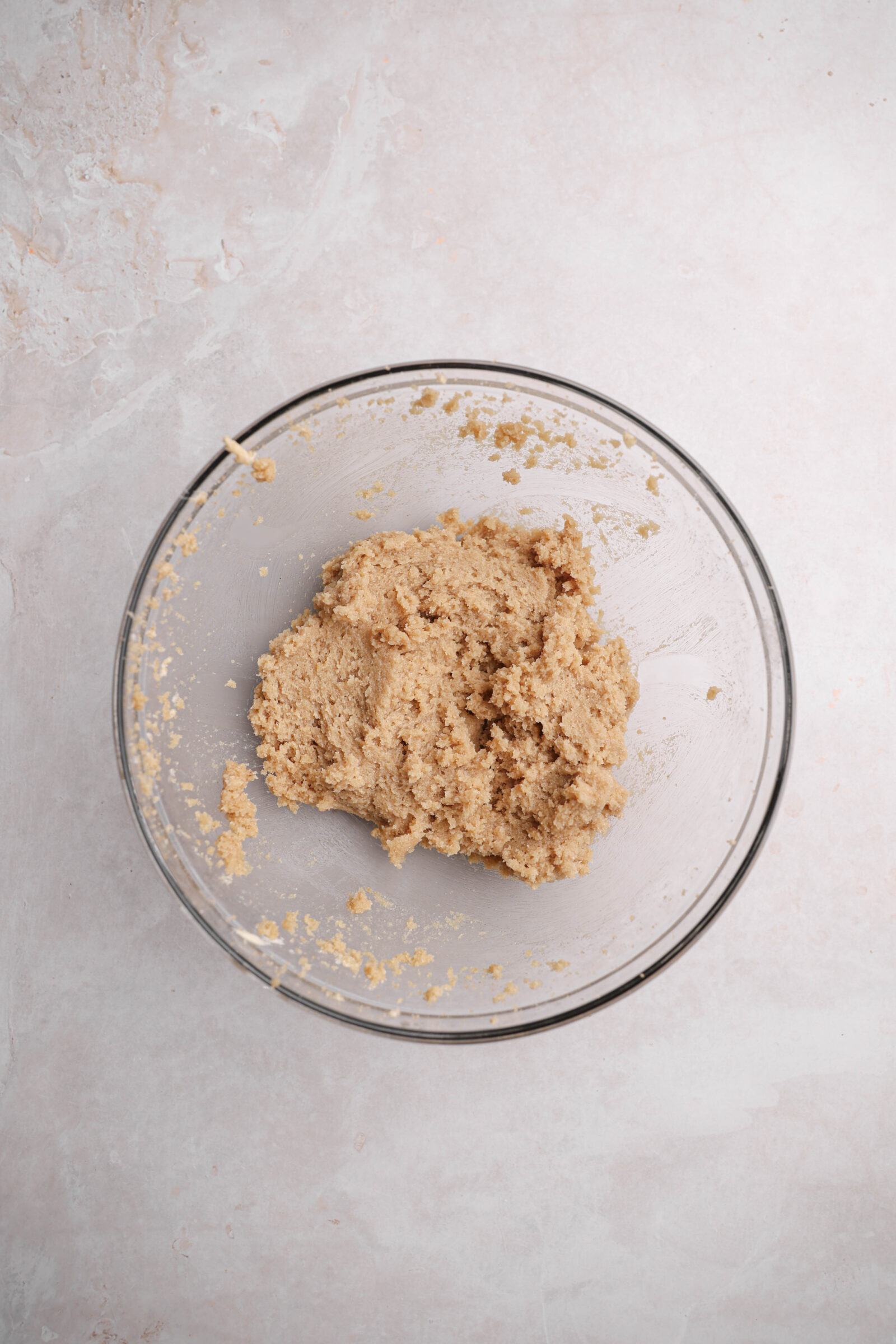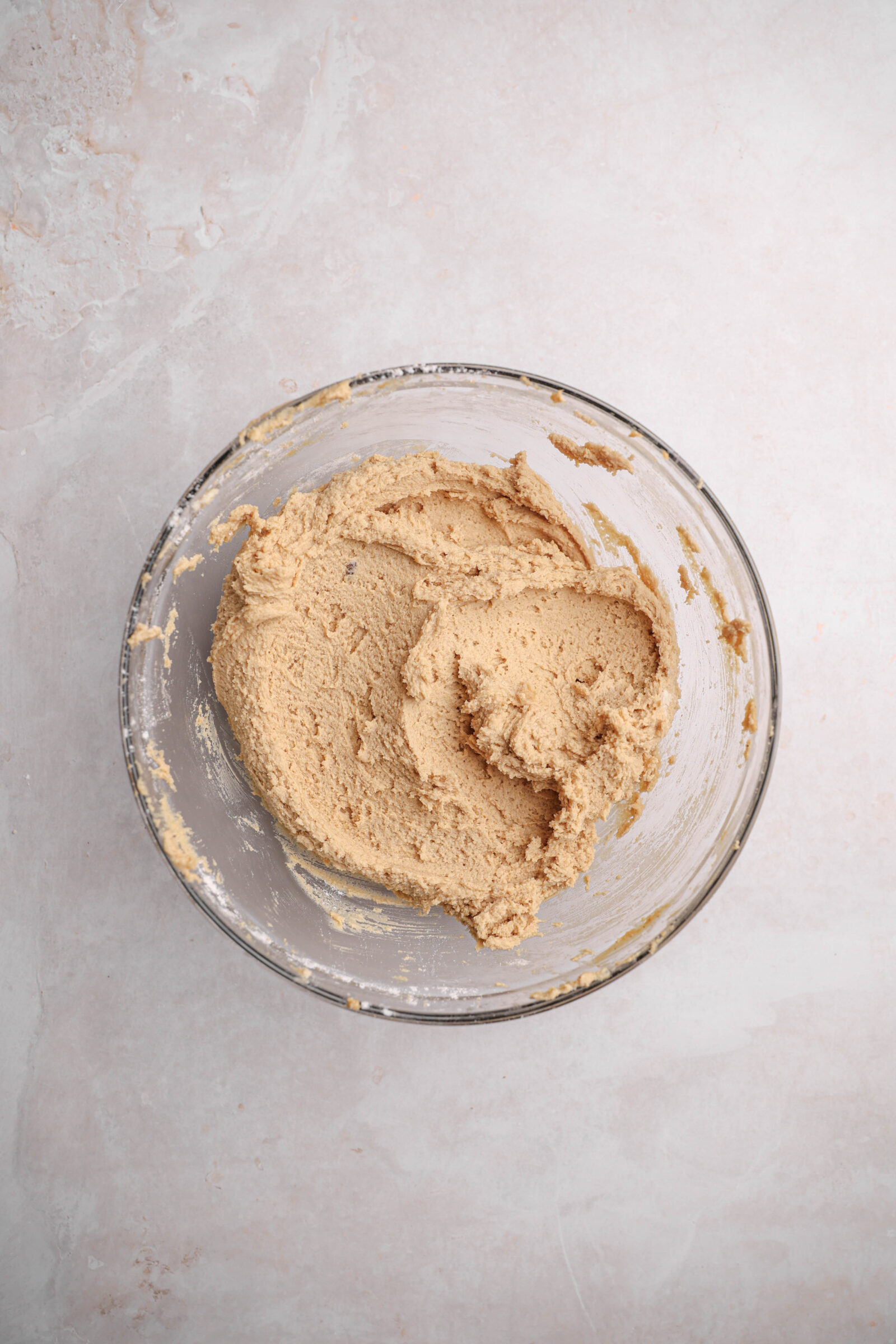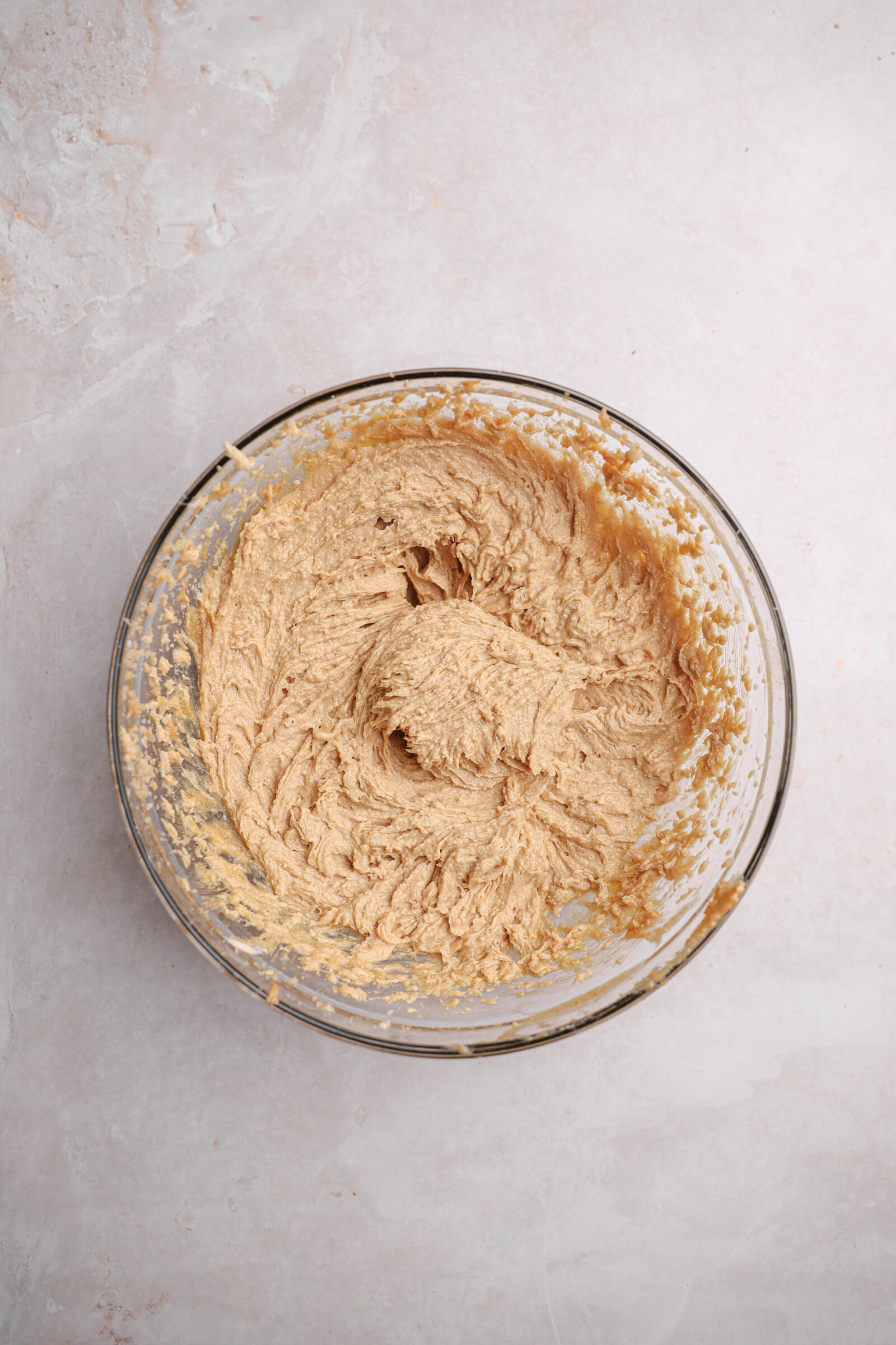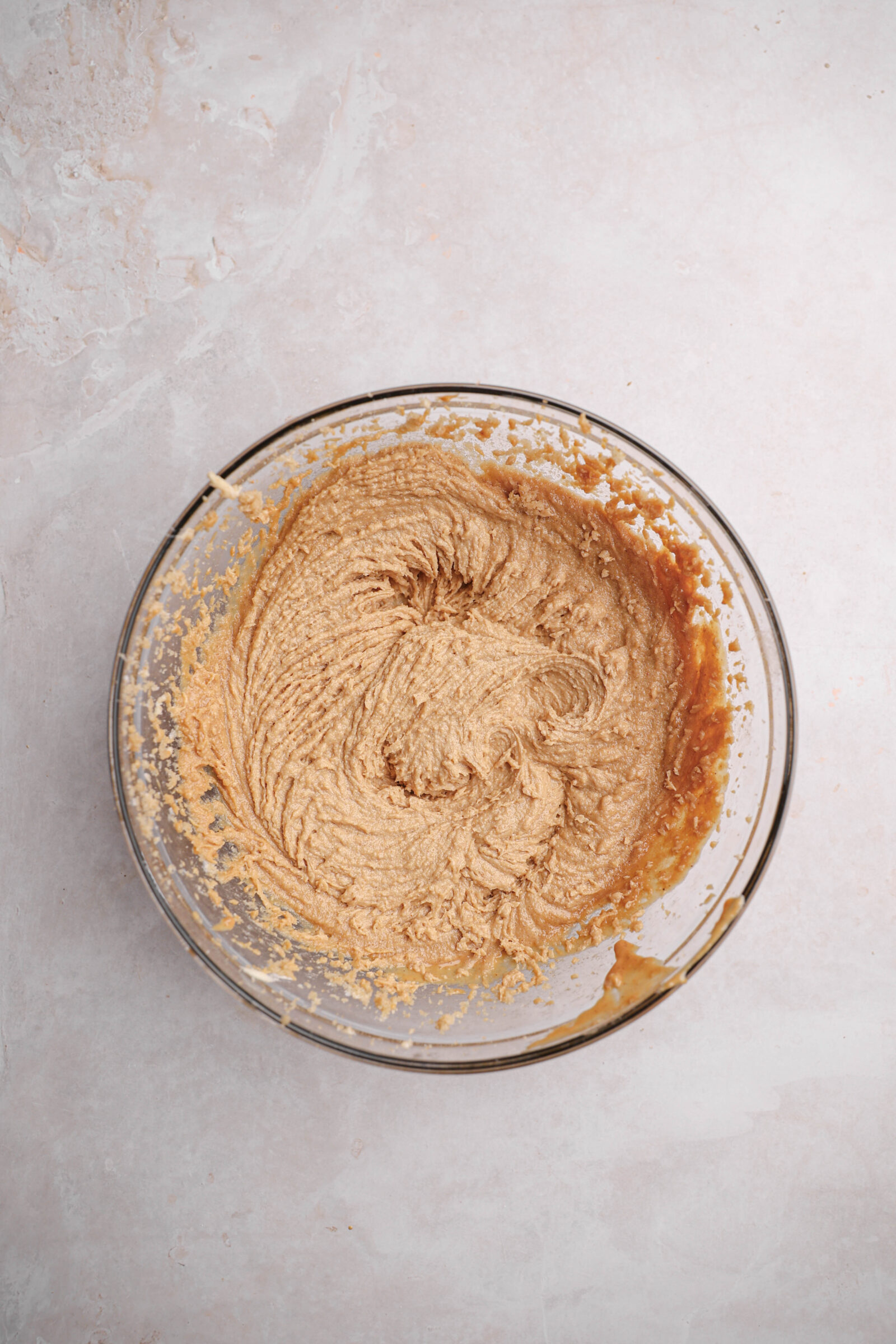 - In a medium-sized bowl if using a handheld mixer or in the bowl of a stand mixer fitted with the paddle attachment, beat together the unsalted butter, brown sugar, and granulated sugar on medium-high speed until light and fluffy. About 2-3 minutes. Add the peanut butter and beat on medium speed until well combined.