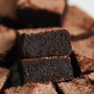 Easily the best brownie I’ve ever had. I used dark brown sugar and an 8×10 pan for 28 mins because its what I had, and they were still perfect. Definitely let them set completely before trying and dont skip the cinnamon sugar topping!